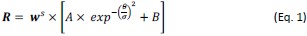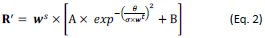 To account for the OD-dependent changes of orientation tuning bandwidths under CFS, a w-dependent inhibition factor wt was introduced, which scaled the σ of the tuning functions, changing the monocular tunings R into R’: