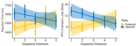 Please note that, for the above reason, mathematically the conclusion of larger effects in one experiment than the other is licensed by the significant interaction even without follow-up t-tests. However, if the reader would like to see these tests, they are simply the main analysis results reported in each of the two experiment sections, where significant (t-test) differences between faster and slower feedback were induced with interoceptive cues (Experiment 1) but not exteroceptive cues (Experiment 2). Reporting them in the between-experiment comparison section again would therefore be redundant.