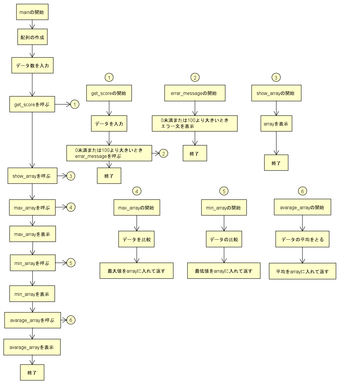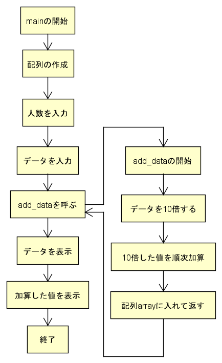 main関数で配列に格納した値を引数とする