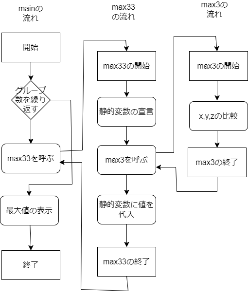 static int max; /* 最大値を保持するstatic変数 */ static int count = 0; /* 関数max33が初めて呼ばれたかどうか判定するstatic変数 */