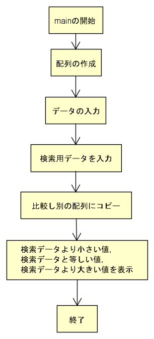 「検索用データより小さい数値」,「検索データと等しい数値」,「検索データより大きい数値」を格納するための配列を作成