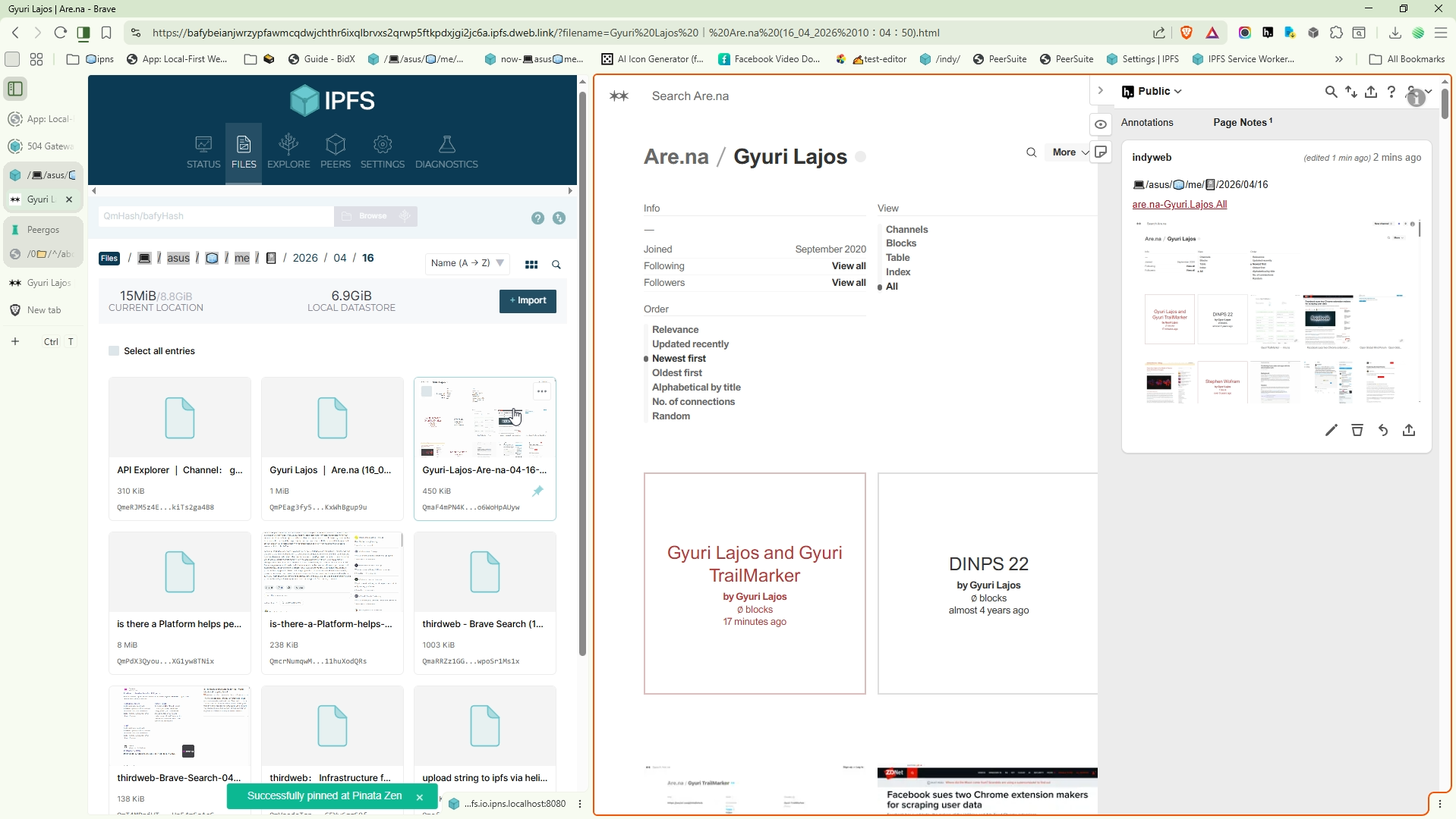 To share you own work autnomously on the indyweb you need to install IPFS Desktop and learn the ropes to weave your on networked conversations around your own work