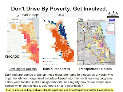Because I maintained a database of non-school tutor/mentor programs in Chicago I was often called by parents, grandparents, social workers, etc. asking if there was a tutor/mentor program available for a youth in their family, or who they were working with. Often, as soon as they gave the age and zip code, I knew there was no program available for that youth. When I said this there was a strong sense of frustration clearly apparent from the caller.