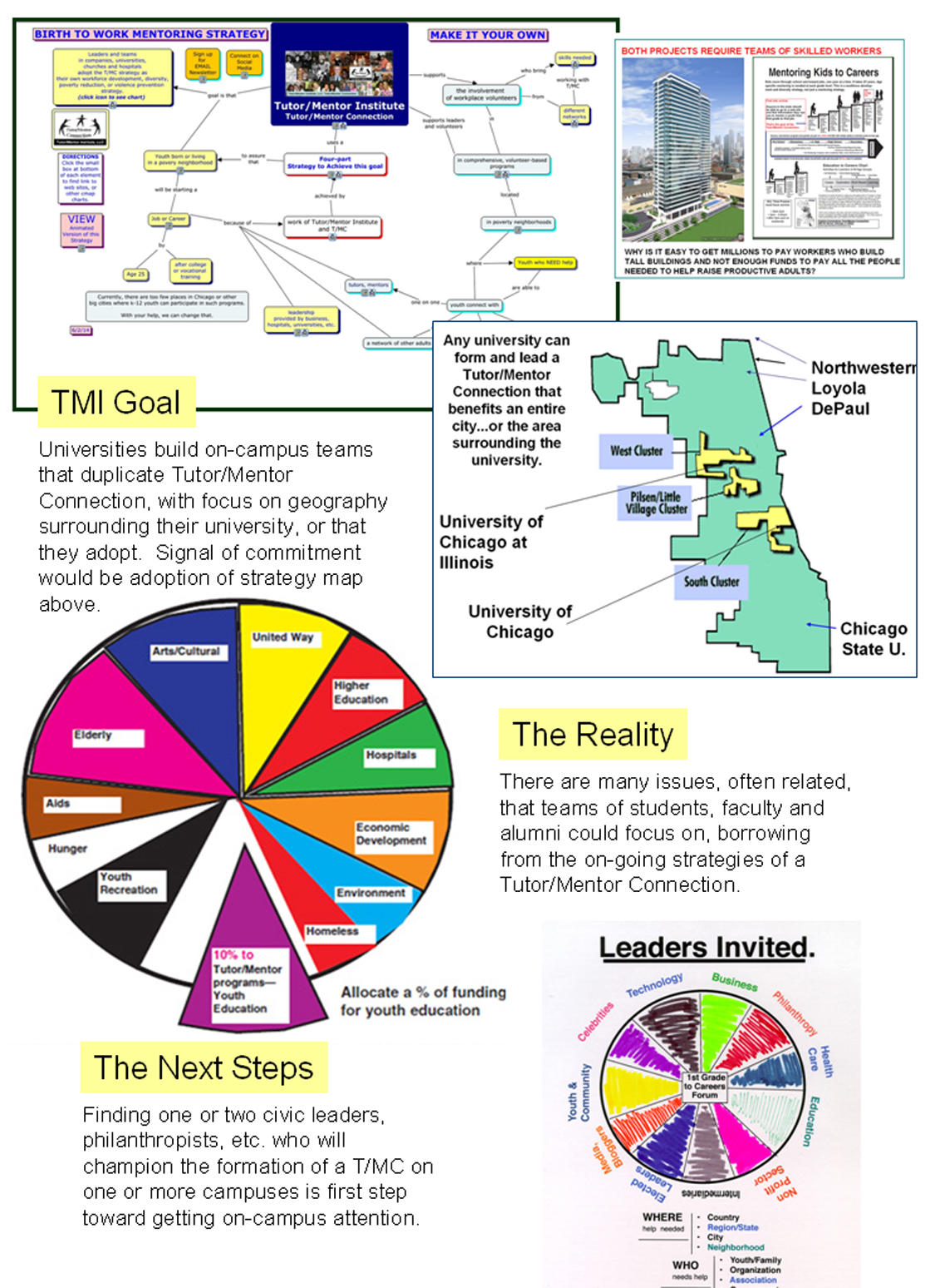 Since the mid 1990s I've tried to have the Tutor/Mentor Connection strategies adopted by one or more wealth management firms. Using their talent they could communicate strategies from my site much better than I can, and can mobilize donors to support those strategies.